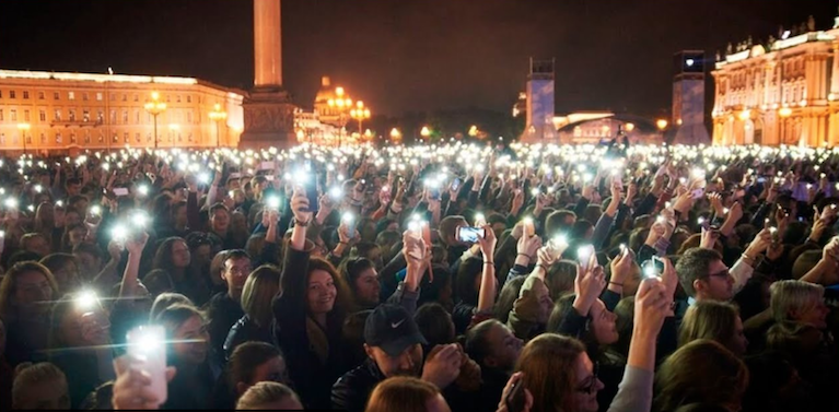 Hundreds of young Russians gathered [10] in a square in the center of St. Petersburg on the night of Oct. 14 to defy censorship by performing a banned song that calls (in barely veiled terms) for the overthrow of Vladimir Putin. The crowd converged on the city's iconic Palace Square to sing "Swan Lake Cooperative [11]" by exiled rapper Noize MC, which was outlawed in May when judicial authorities labeled it "extremist." The song title refers to the practice in Soviet times of suspending all regular TV and radio broadcasts to play Tchaikovsky's ballet "Swan Lake [12]" continuously whenever the old leader died or was deposed and the transition to a new one was underway. The lyrics go: "The old man still clings to his throne... When the czar dies, we'll dance again, 'Swan Lake' on every screen... I want to watch the ballet... Let the old man shake in fear..."